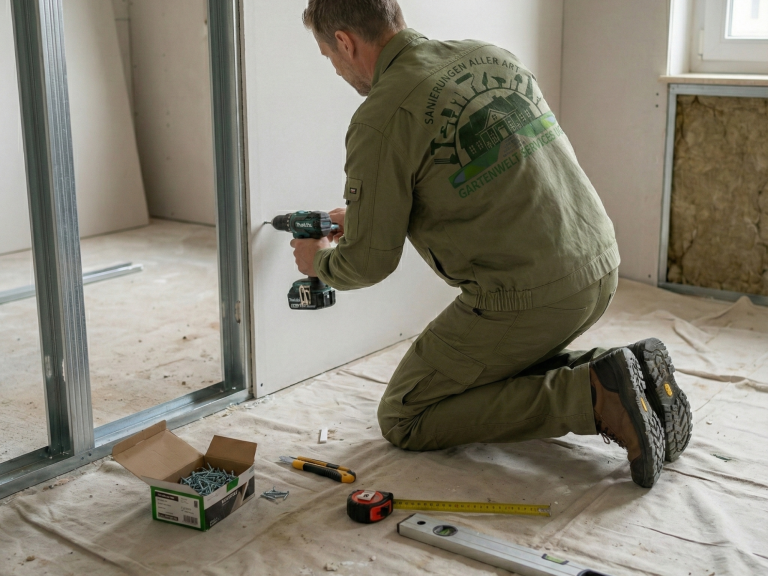 Professionelle Trockenbauarbeiten für Neubau und Sanierung, einschließlich Trennwänden, Deckenabhängungen und Verkleidungen.