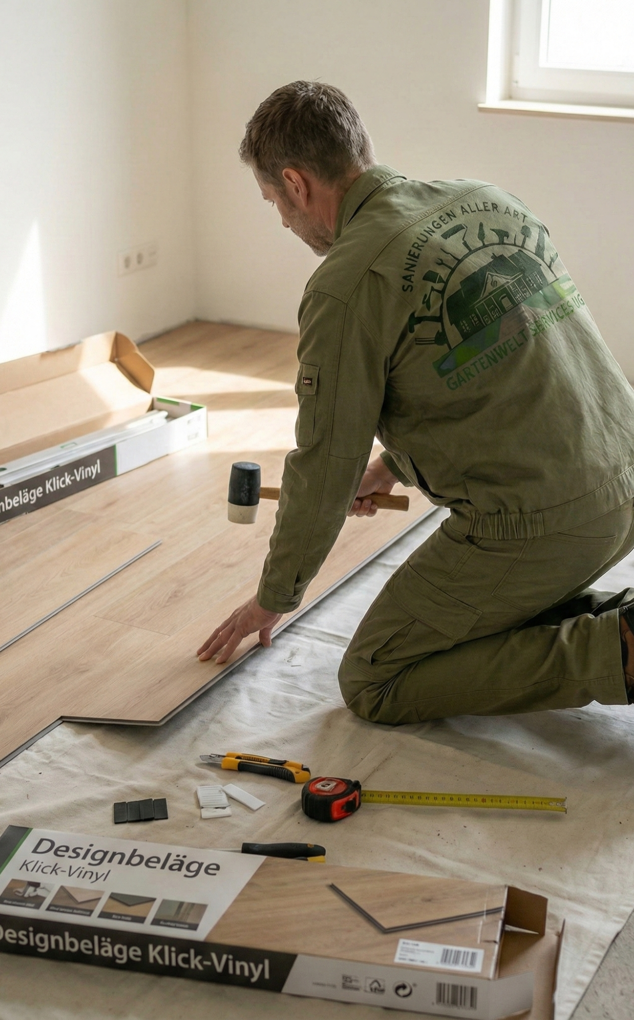 Gartenwelt Services ist Ihr zuverlässiger Ansprechpartner für professionelle Bodenlegearbeiten im privaten und gewerblichen Bereich. Wir verlegen Bodenbeläge fachgerecht, maßgenau und langlebig – vom Untergrund bis zur sauberen Übergabe. Unsere Arbeiten sind technisch korrekt, termintreu und auf dauerhafte Nutzung ausgelegt.